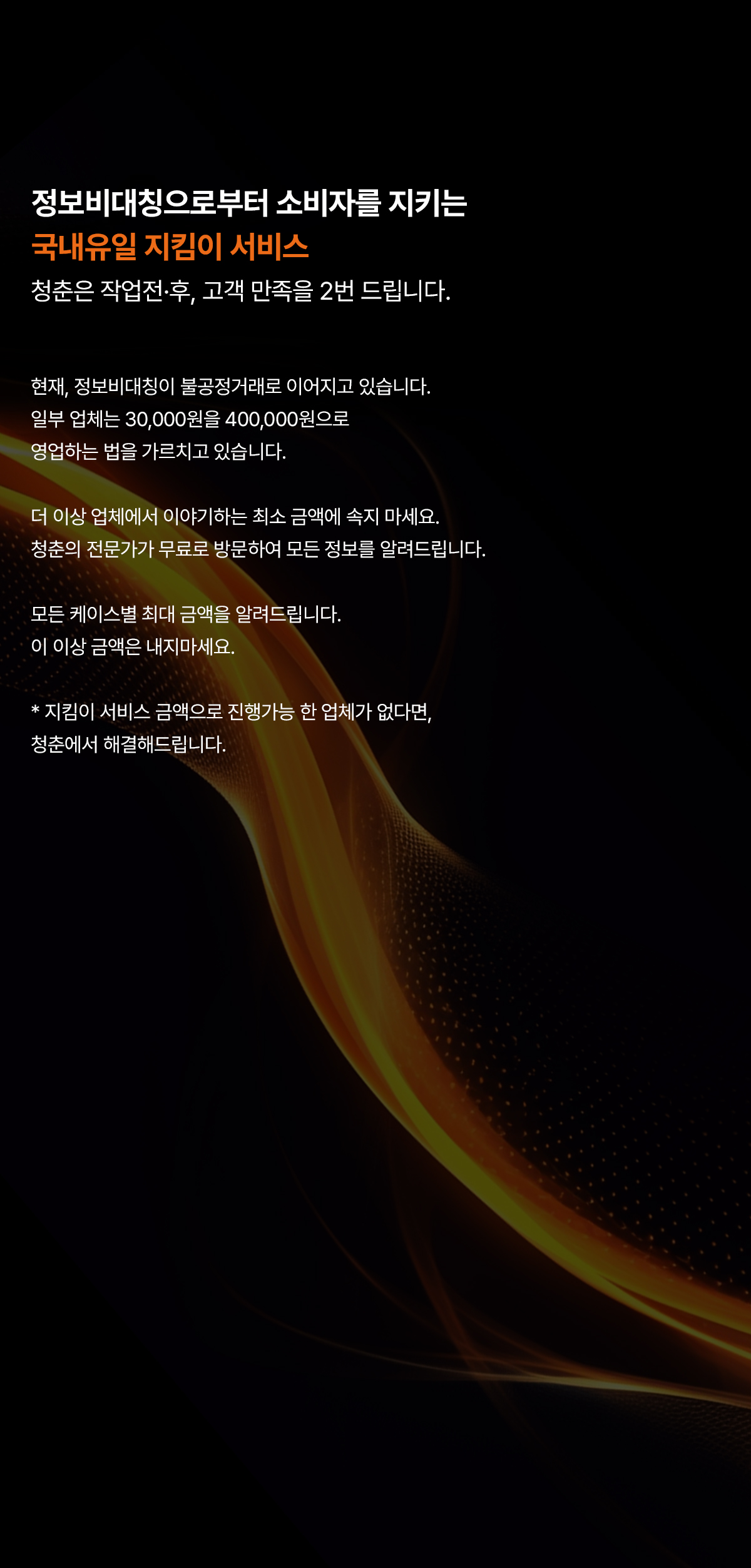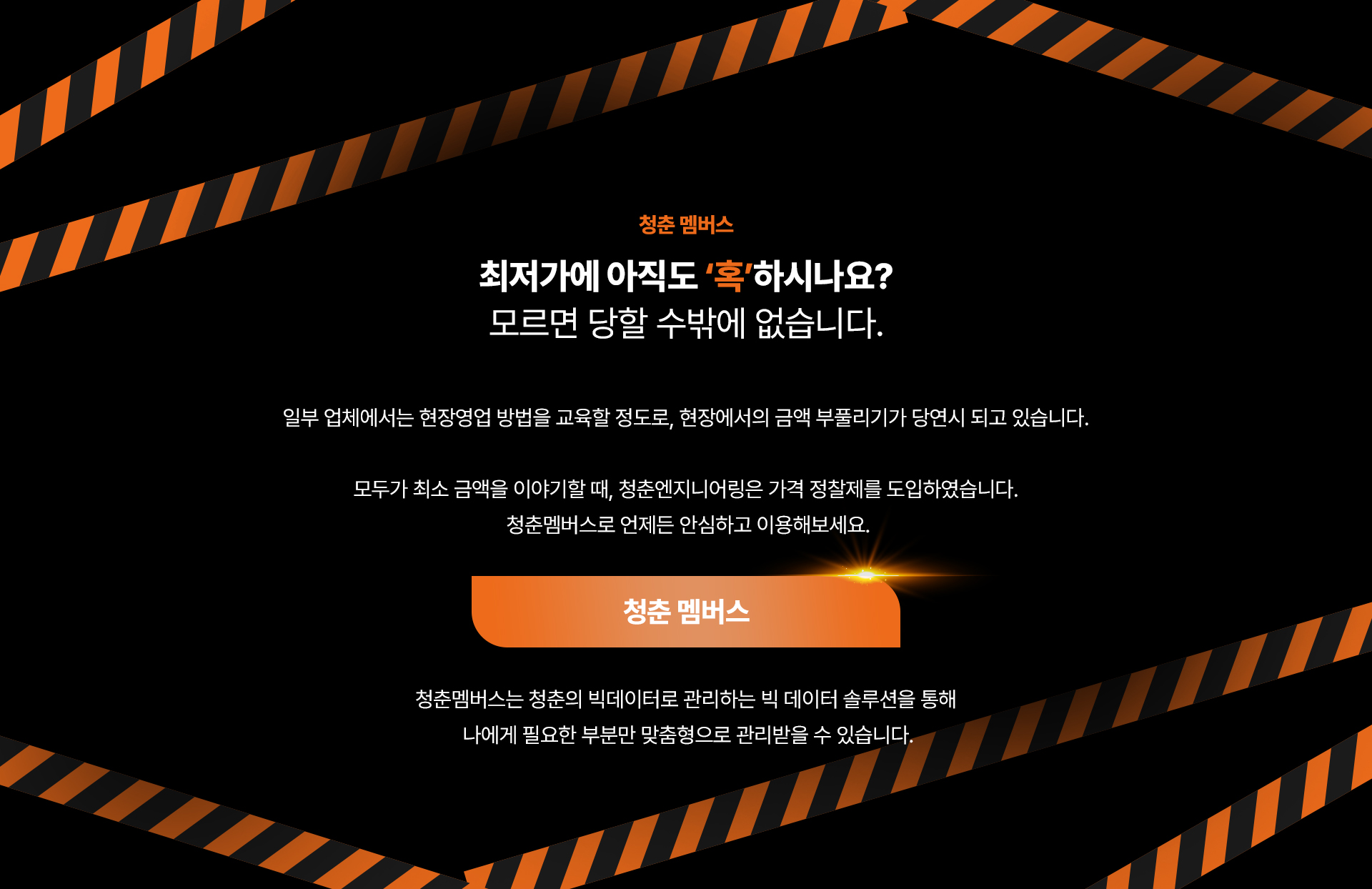 지킴이 서비스 뚫어주세요 고쳐주세요 꾸며주세요 청춘 멤버스 ABC 서비스 문의하기 이 양식을 작성하려면 브라우저에서 JavaScript를 활성화하십시오.이 양식을 작성하려면 브라우저에서 JavaScript를 활성화하십시오.문의 유형 *문의 유형기업고객개인고객취업 · 창업 · 교육회사소개서 신청 성함 동의 개인정보수집 성함 *연락처 *이메일 *문의 내용 *개인정보수집 및 동의 *개인정보수집 및 동의 *회사명 주식회사 청춘엔지니어링(이하 ‘회사’라 한다)는 개인정보 보호법 제30조에 따라 정보 주체의 개인정보를 보호하고 이와 관련한 고충을 신속하고 원활하게 처리할 수 있도록 하기 위하여 다음과 같이 개인정보 처리지침을 수립, 공개합니다. 제1조 (개인정보의 처리목적) 회사는 다음의 목적을 위하여 개인정보를 처리합니다. 처리하고 있는 개인정보는 다음의 목적 이외의 용도로는 이용되지 않으며, 이용 목적이 변경되는 경우에는 개인정보보호법 제18조에 따라 별도의 동의를 받는 등 필요한 조치를 이행할 예정입니다. 1. 홈페이지 회원 가입 및 관리 회원 가입 의사 확인, 회원제 서비스 제공에 따른 본인 식별․인증, 회원자격 유지․관리, 제한적 본인확인제 시행에 따른 본인확인, 서비스 부정 이용 방지, 만 14세 미만 아동의 개인정보처리 시 법정대리인의 동의 여부 확인, 각종 고지․통지, 고충 처리 등을 목적으로 개인정보를 처리합니다. 2. 재화 또는 서비스 제공 물품 배송, 서비스 제공, 계약서 및 청구서 발송, 콘텐츠 제공, 맞춤서비스 제공, 본인인증, 연령인증, 요금 결제 및 정산, 채권추심 등을 목적으로 개인정보를 처리합니다. 3. 고충 처리 민원인의 신원 확인, 민원사항 확인, 사실조사를 위한 연락․통지, 처리 결과 통보 등의 목적으로 개인정보를 처리합니다. 제2조 (개인정보의 처리 및 보유기간) ① 회사는 법령에 따른 개인정보 보유, 이용 기간 또는 정보주체로부터 개인정보를 수집 시에 동의 받은 개인정보 보유, 이용 기간 내에서 개인정보를 처리, 보유합니다. ② 각각의 개인정보 처리 및 보유 기간은 다음과 같습니다. 1. 홈페이지 회원 가입 및 관리 : 사업자/단체 홈페이지 탈퇴 시까지 다만, 다음의 사유에 해당하는 경우에는 해당 사유 종료 시까지 1) 관계 법령 위반에 따른 수사, 조사 등이 진행 중인 경우에는 해당 수사, 조사 종료 시까지 2) 홈페이지 이용에 따른 채권 및 채무관계 잔존 시에는 해당 채권, 채무 관계 정산 시까지 2. 재화 또는 서비스 제공 : 재화․서비스 공급완료 및 요금결제․정산 완료 시까지 다만, 다음의 사유에 해당하는 경우에는 해당 기간 종료 시까지 1) 「전자상거래 등에서의 소비자 보호에 관한 법률」에 따른 표시․광고, 계약내용 및 이행 등 거래에 관한 기록 - 표시․광고에 관한 기록 : 6월 - 계약 또는 청약 철회, 대금결제, 재화 등의 공급기록 : 5년 - 소비자 불만 또는 분쟁 처리에 관한 기록 : 3년 2) 「통신비밀보호법」 제41조에 따른 통신사실확인자료 보관 - 가입자 전기통신일시, 개시․종료 시간, 상대방 가입자 번호, 사용도수, 발신기지국 위치추적자료 : 1년 - 컴퓨터 통신, 인터넷 로그 기록자료, 접속지 추적자료 : 3개월 제3조 (개인정보의 제3자 제공) ① 회사는 정보주체의 개인정보를 제1조(개인정보의 처리목적)에서 명시한 범위 내에서만 처리하며, 정보주체의 동의, 법률의 특별한 규정 등 개인정보 보호법 제17조에 해당하는 경우에만 개인정보를 제3자에게 제공합니다. ② 회사는 다음과 같이 개인정보를 제3자에게 제공하고 있습니다. - 개인정보를 제공받는 자 : <예) (주) OOO 카드> - 제공받는 자의 개인정보 이용목적 : <예) 이벤트 공동개최 등 업무제휴 및 제휴 신용카드 발급> - 제공하는 개인정보 항목 : <예) 성명, 주소, 전화번호, 이메일주소, 카드결제계좌정보> - 제공받는 자의 보유, 이용기간 : <예) 신용카드 발급계약에 따른 거래기간동안> 제4조(개인정보처리의 위탁) ① 회사는 원활한 개인정보 업무처리를 위하여 다음과 같이 개인정보 처리업무를 위탁하고 있습니다. - 위탁받는 자 (수탁자) : (주)카페24 - 위탁하는 업무의 내용 : 쇼핑몰 호스팅 서비스의 시스템 제공, 모바일 앱 서비스, 마케팅 서비스 및 부가, 제휴서비스 제공 및 알림톡, 친구톡, 문자메시지 발송대행 서비스 등 - 위탁받는 자 (수탁자) : OOO PG - 위탁하는 업무의 내용 : 결제 및 에스크로 업무 - 위탁받는 자 (수탁자) : OOO 택배 - 위탁하는 업무의 내용 : 상품 배송 업무 - 위탁받는 자 (수탁자) : OOO 고객센터 - 위탁하는 업무의 내용 : 고객상담 업무 - 위탁받는 자 (수탁자) : OOO - 위탁하는 업무의 내용 : 본인확인 업무 ② 회사는 위탁계약 체결 시 개인정보 보호법 제25조에 따라 위탁업무 수행목적 외 개인정보 처리금지, 기술적․관리적 보호조치, 재위탁 제한, 수탁자에 대한 관리․감독, 손해배상 등 책임에 관한 사항을 계약서 등 문서에 명시하고, 수탁자가 개인정보를 안전하게 처리하는지를 감독하고 있습니다. ③ 위탁업무의 내용이나 수탁자가 변경될 경우에는 지체없이 본 개인정보 처리방침을 통하여 공개하도록 하겠습니다. 제5조(이용자 및 법정대리인의 