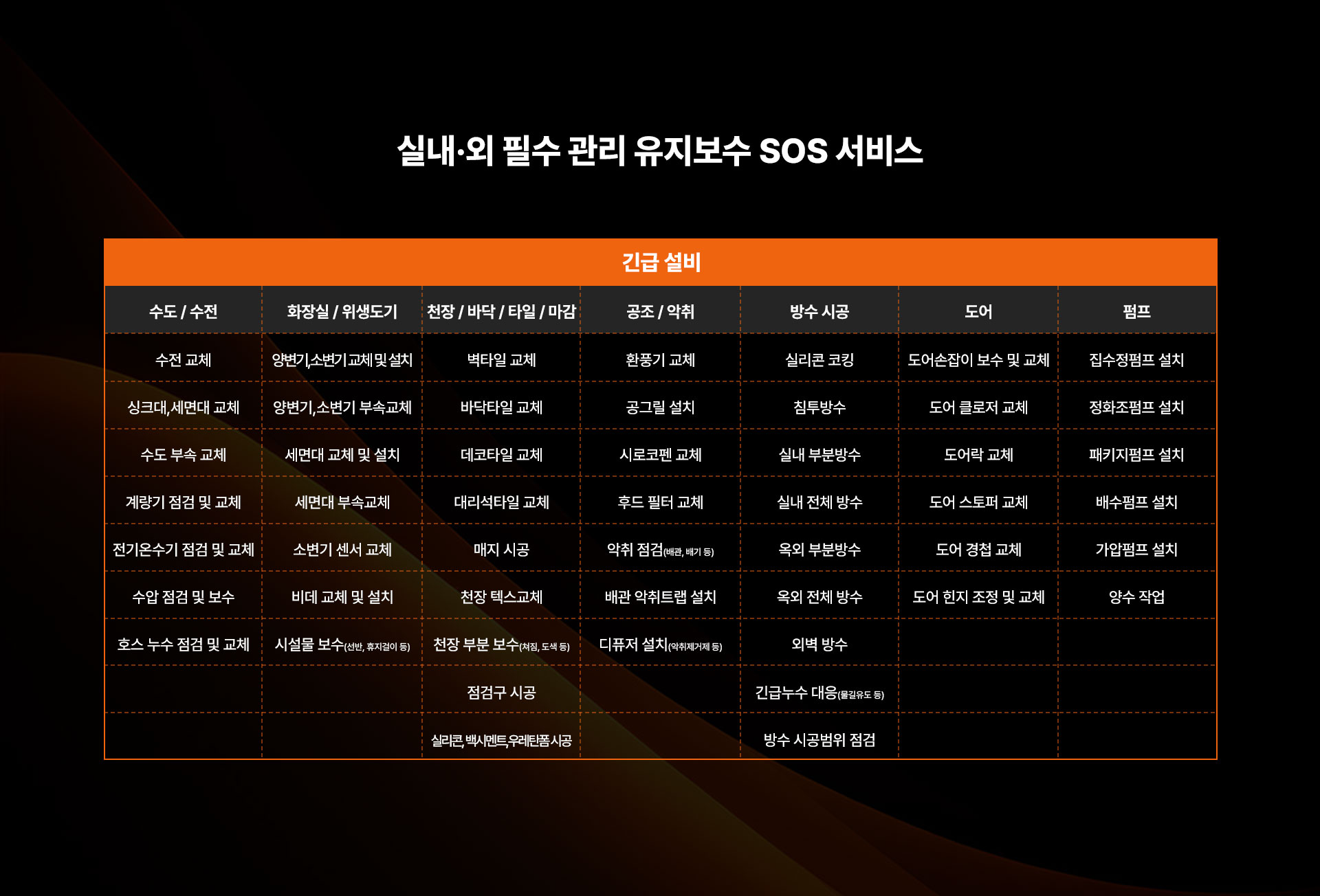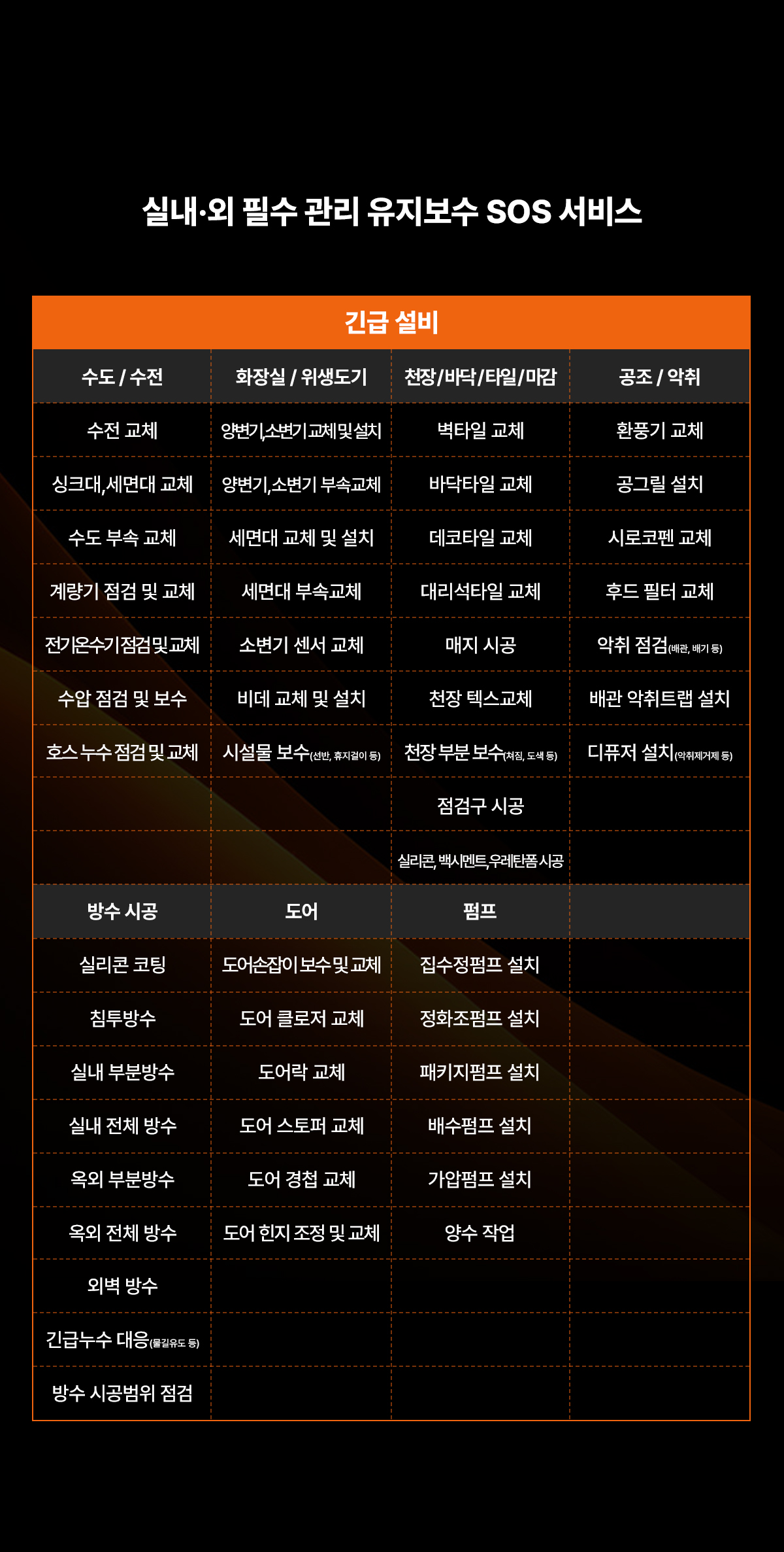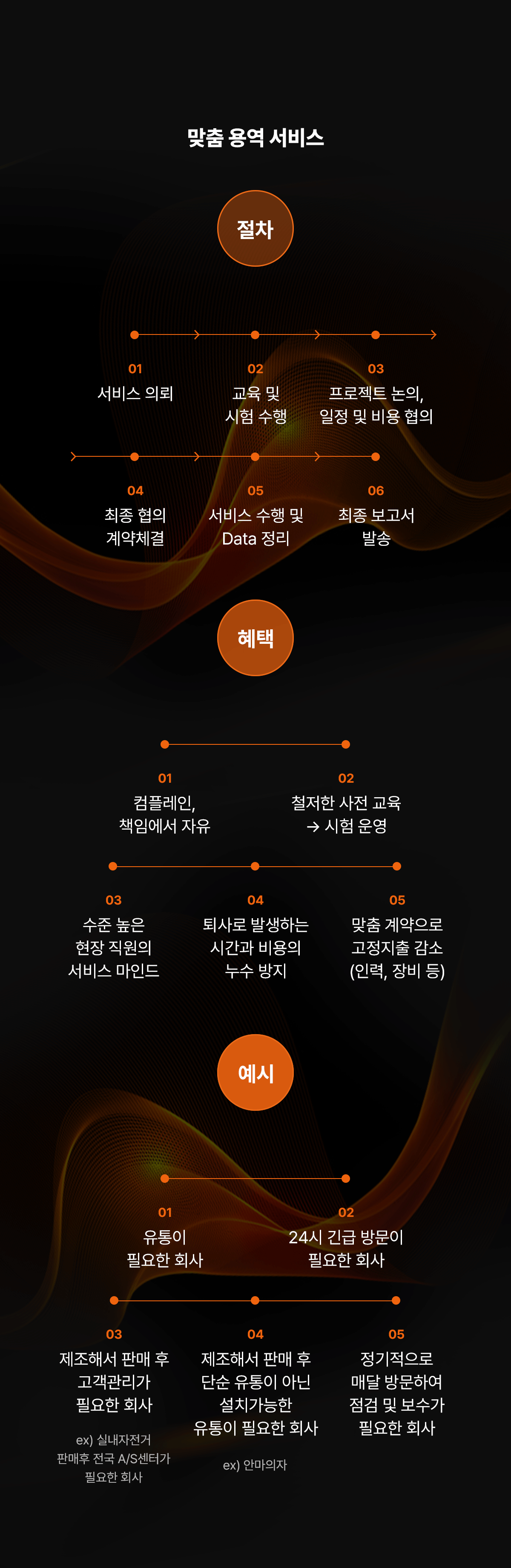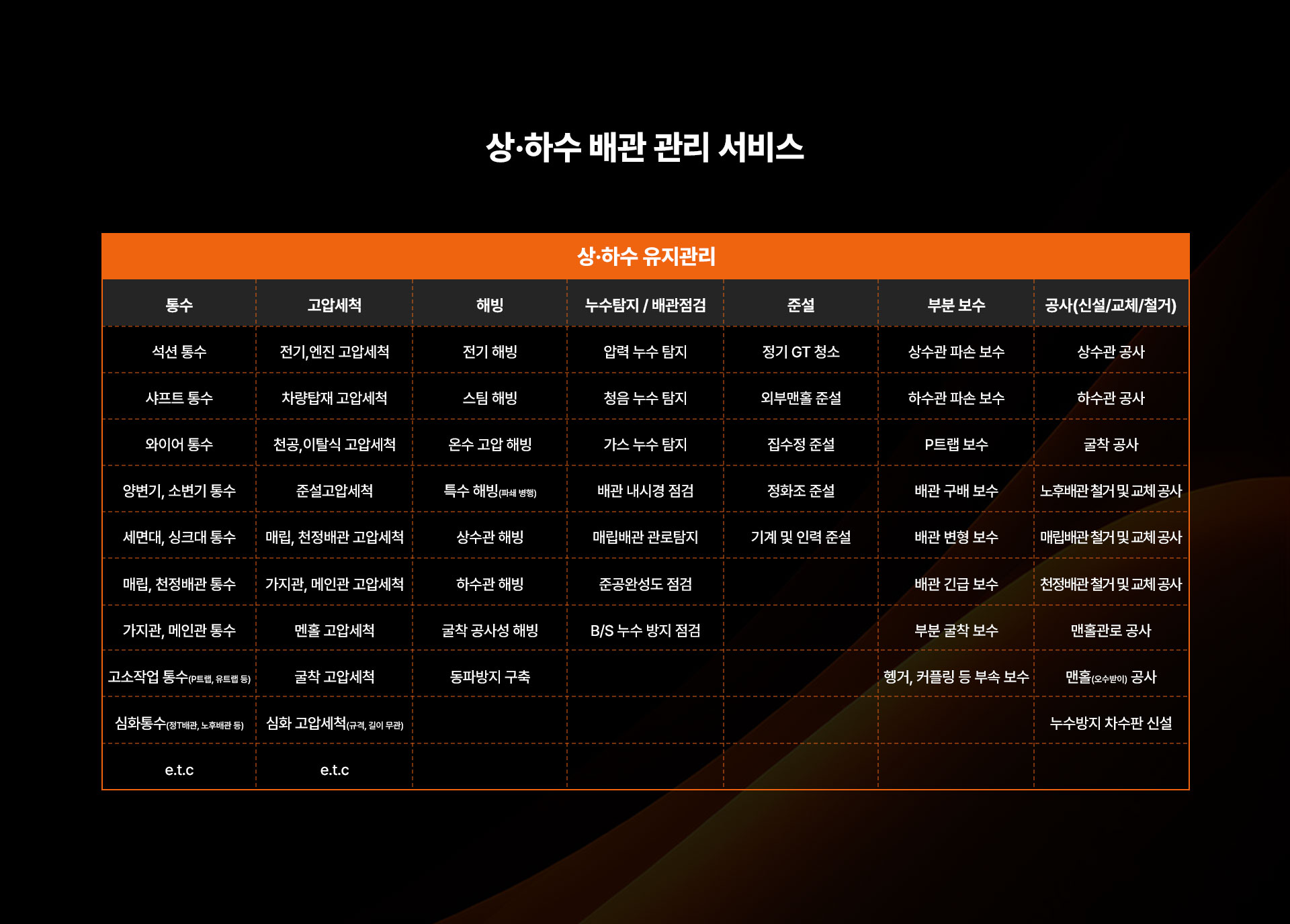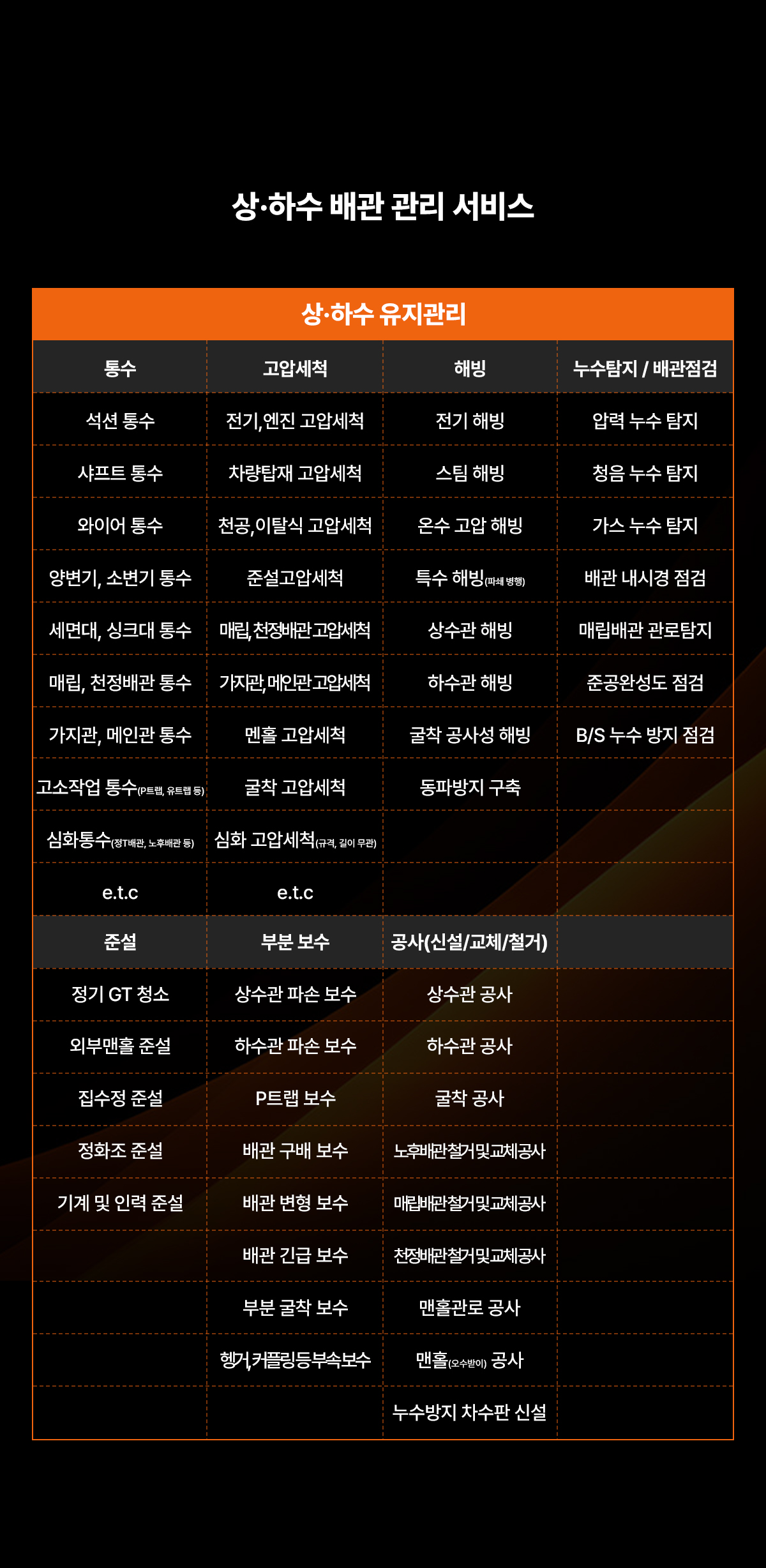 상·하수 배관 관리 서비스 실내·외 필수 관리 유지보수 SOS 서비스 실내·외 건축 부분/전체 공사 서비스 실내·외 위생/청결 케어 서비스 맞춤 용역 서비스 문의하기 이 양식을 작성하려면 브라우저에서 JavaScript를 활성화하십시오.이 양식을 작성하려면 브라우저에서 JavaScript를 활성화하십시오.문의 유형 *문의 유형기업고객개인고객취업 · 창업 · 교육회사소개서 신청성함 *연락처 *이메일 *문의 내용 * 문의 유형 및 개인정보수집 및 동의 *개인정보수집 및 동의 *회사명 주식회사 청춘엔지니어링(이하 ‘회사’라 한다)는 개인정보 보호법 제30조에 따라 정보 주체의 개인정보를 보호하고 이와 관련한 고충을 신속하고 원활하게 처리할 수 있도록 하기 위하여 다음과 같이 개인정보 처리지침을 수립, 공개합니다. 제1조 (개인정보의 처리목적) 회사는 다음의 목적을 위하여 개인정보를 처리합니다. 처리하고 있는 개인정보는 다음의 목적 이외의 용도로는 이용되지 않으며, 이용 목적이 변경되는 경우에는 개인정보보호법 제18조에 따라 별도의 동의를 받는 등 필요한 조치를 이행할 예정입니다. 1. 홈페이지 회원 가입 및 관리 회원 가입 의사 확인, 회원제 서비스 제공에 따른 본인 식별․인증, 회원자격 유지․관리, 제한적 본인확인제 시행에 따른 본인확인, 서비스 부정 이용 방지, 만 14세 미만 아동의 개인정보처리 시 법정대리인의 동의 여부 확인, 각종 고지․통지, 고충 처리 등을 목적으로 개인정보를 처리합니다. 2. 재화 또는 서비스 제공 물품 배송, 서비스 제공, 계약서 및 청구서 발송, 콘텐츠 제공, 맞춤서비스 제공, 본인인증, 연령인증, 요금 결제 및 정산, 채권추심 등을 목적으로 개인정보를 처리합니다. 3. 고충 처리 민원인의 신원 확인, 민원사항 확인, 사실조사를 위한 연락․통지, 처리 결과 통보 등의 목적으로 개인정보를 처리합니다. 제2조 (개인정보의 처리 및 보유기간) ① 회사는 법령에 따른 개인정보 보유, 이용 기간 또는 정보주체로부터 개인정보를 수집 시에 동의 받은 개인정보 보유, 이용 기간 내에서 개인정보를 처리, 보유합니다. ② 각각의 개인정보 처리 및 보유 기간은 다음과 같습니다. 1. 홈페이지 회원 가입 및 관리 : 사업자/단체 홈페이지 탈퇴 시까지 다만, 다음의 사유에 해당하는 경우에는 해당 사유 종료 시까지 1) 관계 법령 위반에 따른 수사, 조사 등이 진행 중인 경우에는 해당 수사, 조사 종료 시까지 2) 홈페이지 이용에 따른 채권 및 채무관계 잔존 시에는 해당 채권, 채무 관계 정산 시까지 2. 재화 또는 서비스 제공 : 재화․서비스 공급완료 및 요금결제․정산 완료 시까지 다만, 다음의 사유에 해당하는 경우에는 해당 기간 종료 시까지 1) 「전자상거래 등에서의 소비자 보호에 관한 법률」에 따른 표시․광고, 계약내용 및 이행 등 거래에 관한 기록 - 표시․광고에 관한 기록 : 6월 - 계약 또는 청약 철회, 대금결제, 재화 등의 공급기록 : 5년 - 소비자 불만 또는 분쟁 처리에 관한 기록 : 3년 2) 「통신비밀보호법」 제41조에 따른 통신사실확인자료 보관 - 가입자 전기통신일시, 개시․종료 시간, 상대방 가입자 번호, 사용도수, 발신기지국 위치추적자료 : 1년 - 컴퓨터 통신, 인터넷 로그 기록자료, 접속지 추적자료 : 3개월 제3조 (개인정보의 제3자 제공) ① 회사는 정보주체의 개인정보를 제1조(개인정보의 처리목적)에서 명시한 범위 내에서만 처리하며, 정보주체의 동의, 법률의 특별한 규정 등 개인정보 보호법 제17조에 해당하는 경우에만 개인정보를 제3자에게 제공합니다. ② 회사는 다음과 같이 개인정보를 제3자에게 제공하고 있습니다. - 개인정보를 제공받는 자 : <예) (주) OOO 카드> - 제공받는 자의 개인정보 이용목적 : <예) 이벤트 공동개최 등 업무제휴 및 제휴 신용카드 발급> - 제공하는 개인정보 항목 : <예) 성명, 주소, 전화번호, 이메일주소, 카드결제계좌정보> - 제공받는 자의 보유, 이용기간 : <예) 신용카드 발급계약에 따른 거래기간동안> 제4조(개인정보처리의 위탁) ① 회사는 원활한 개인정보 업무처리를 위하여 다음과 같이 개인정보 처리업무를 위탁하고 있습니다. - 위탁받는 자 (수탁자) : (주)카페24 - 위탁하는 업무의 내용 : 쇼핑몰 호스팅 서비스의 시스템 제공, 모바일 앱 서비스, 마케팅 서비스 및 부가, 제휴서비스 제공 및 알림톡, 친구톡, 문자메시지 발송대행 서비스 등 - 위탁받는 자 (수탁자) : OOO PG - 위탁하는 업무의 내용 : 결제 및 에스크로 업무 - 위탁받는 자 (수탁자) : OOO 택배 - 위탁하는 업무의 내용 : 상품 배송 업무 - 위탁받는 자 (수탁자) : OOO 고객센터 - 위탁하는 업무의 내용 : 고객상담 업무 - 위탁받는 자 (수탁자) : OOO - 위탁하는 업무의 내용 : 본인확인 업무 ② 회사는 위탁계약 체결 시 개인정보 보호법 제25조에 따라 위탁업무 수행목적 외 개인정보 처리금지, 기술적․관리적 보호조치, 재위탁 제한, 수탁자에 대한 관리․감독, 손해배상 등 책임에 관한 사항을 계약서 등 문서에 명시하고, 수탁자가 개인정보를 안전하게 처리하는지를 감독하고 있습니다. ③ 위탁업무의 내용이나 수탁자가 변경될 경우에는 지체없이 본 개인정보 처리